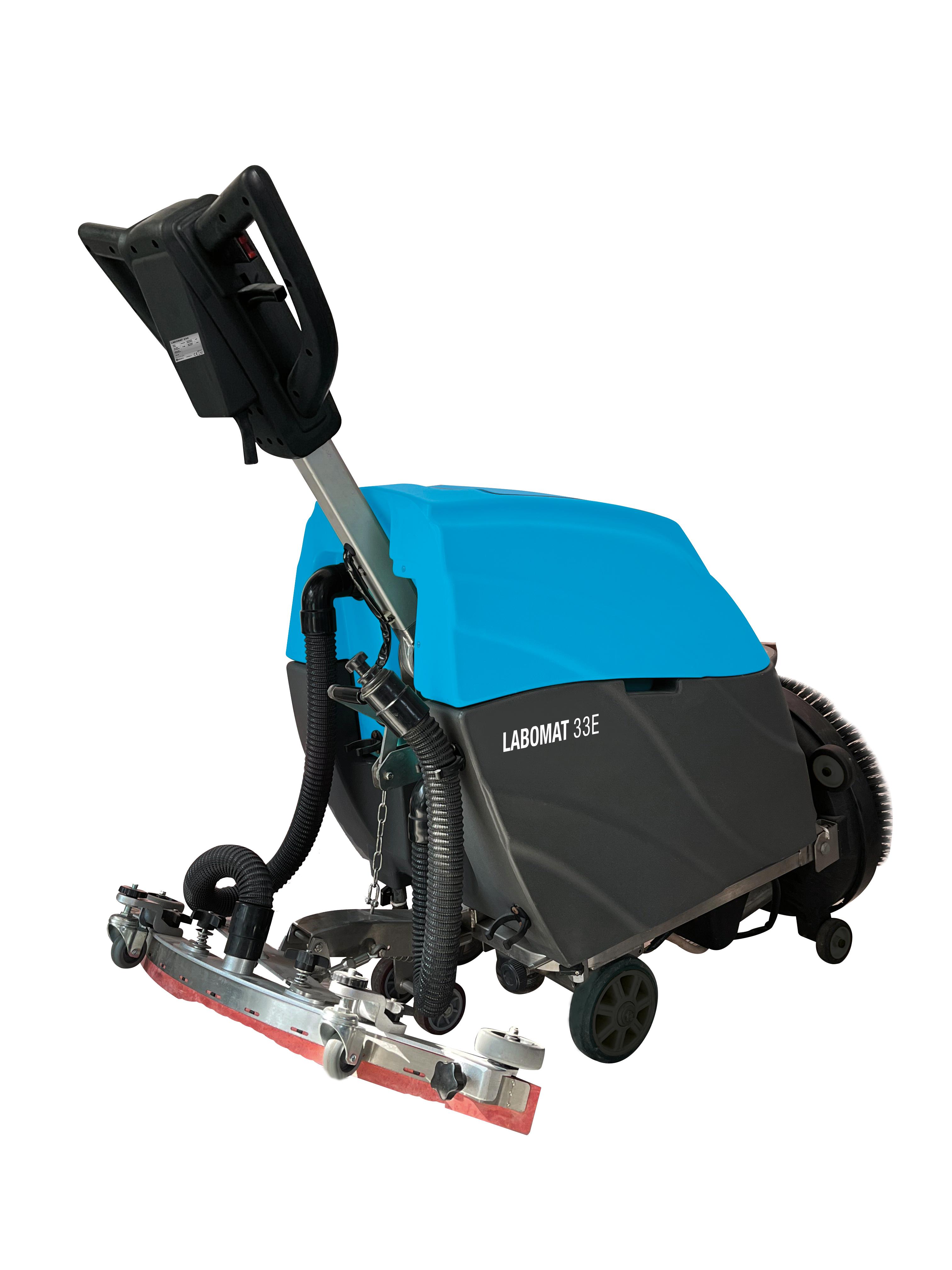 Labomat 33 e kablolu zemin temizleme makinasi, okul, hastane, fabrika, imalathane, depo ve tüm orta genişlikteki alanlı mekanlarda rahat kullanım sağlayan, güçlü ve sessiz zemin temizleme makinasıdır.
