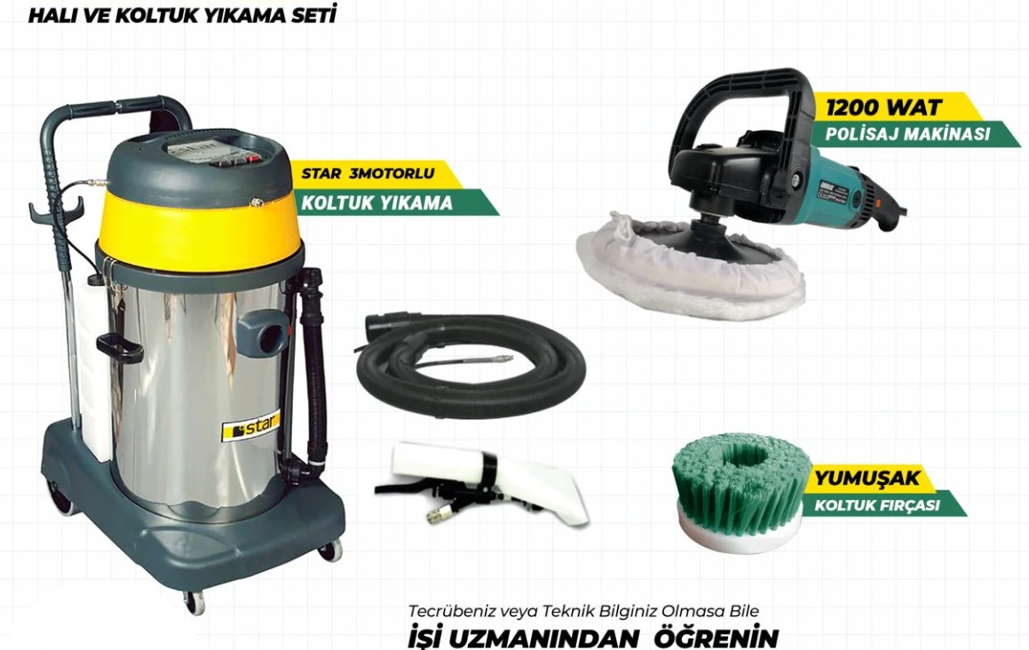Star 3 Motorlu Koltuk Yıkama ve Koltuk Fırçalama Seti