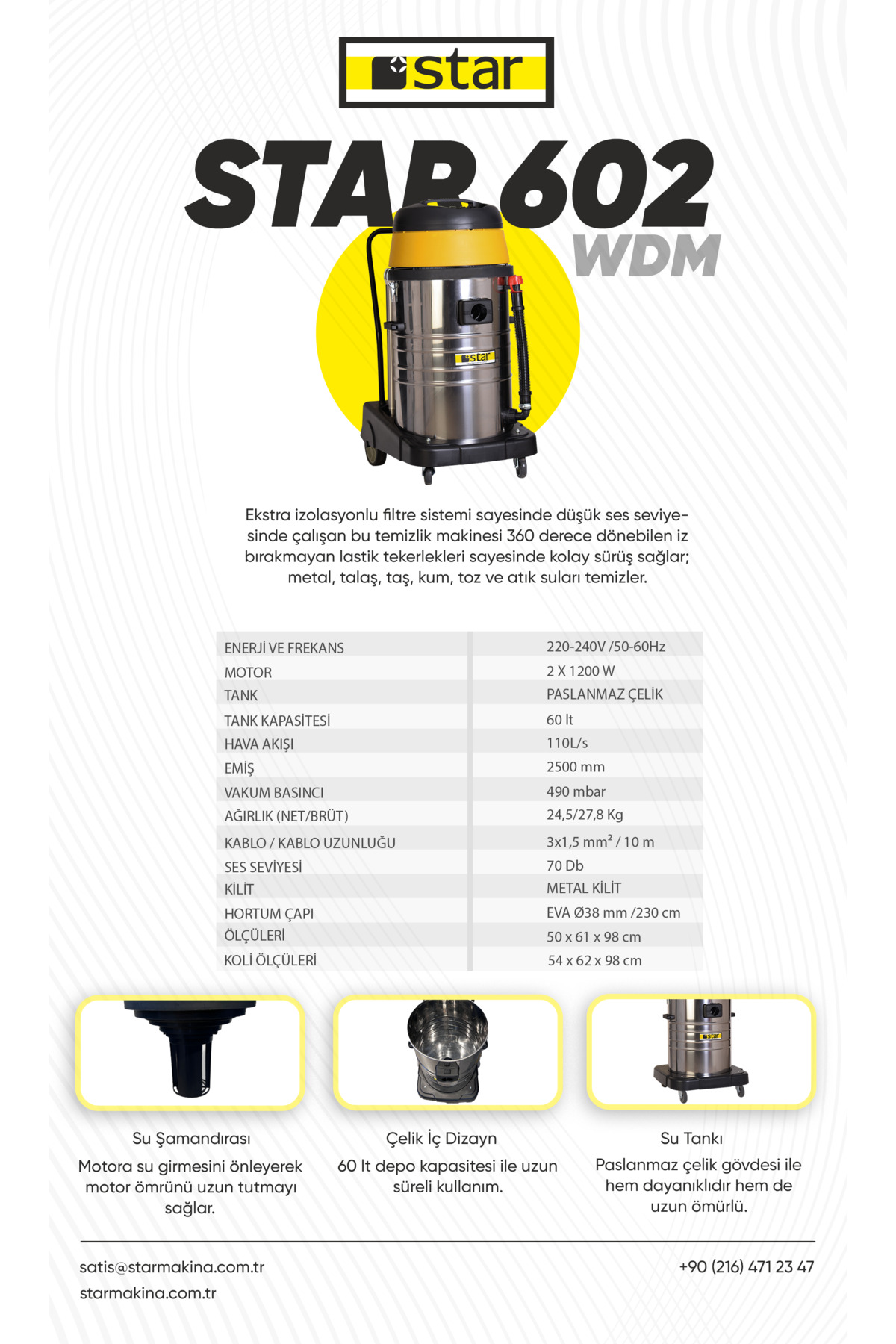 STAR MAKİNA Islak ve Kuru Elektrikli Süpürge 602 WD Metal Çift Motorlu